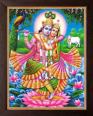 Art n Store: Radha-Krishna Standing Lotus Flower, High Contrast HD Printed Religious & Decor Poster Painting with Brown Wood Frame (30 X 23.5 X 1.5 cm_ Brown Wood): Amazon.in: Home & Kitchen
